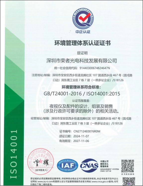 深圳市荣者光电科技发展有限公司(以下简称“荣者光电”),成立于2008年,位于深圳宝安西乡,是一家专业致力于微光夜视仪、热成像仪、数码夜视仪、车辆辅助驾驶仪和像增强器等相关光电产品的研发、生产、销售为一体的高科技企业。
